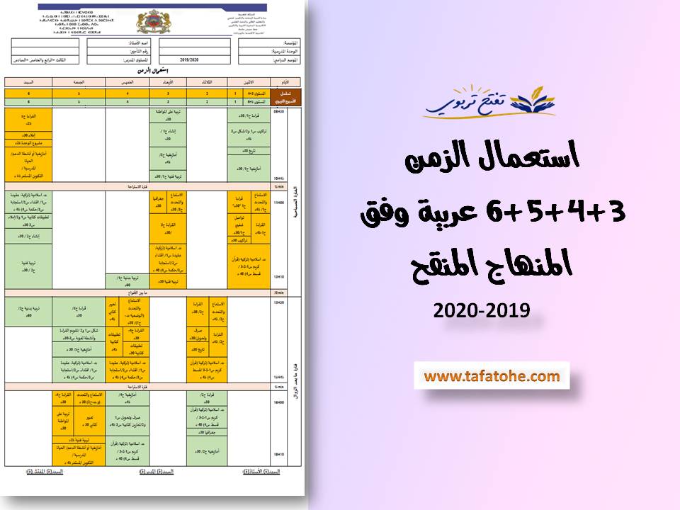 استعمال الزمن 3+4+5+6 عربية وفق المنهاج المنقح