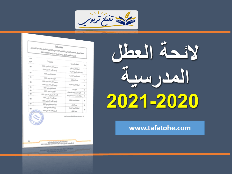 لائحة العطل المدرسية باللغة العربية 2020-2021