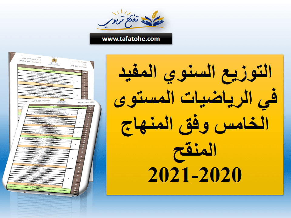 نضع بين ايديكم التوزيع السنوي المفيد في الرياضيات المستوى الخامس وفق المنهاج المنقح.التوزيع السنوي للمرجع الجديد للمستوى الخامس طبعة شتنبر 2020.