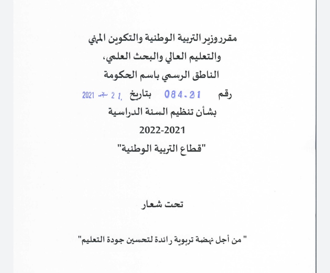 اليكم المقرر الوزاري الجديد لتنظيم السنة الدراسية 2021 2022.