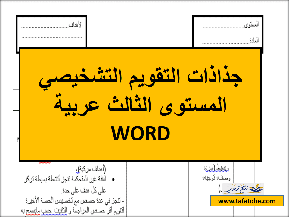 تحميل جذاذات التقويم التشخيصي المستوى الثالث عربية WORD
